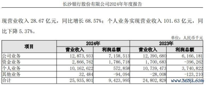 财报显示,2024年,长沙银行实现营业收入259.36亿元,归母净利润78.27亿元,分别实现了4.57%和4.87%的同比增长。