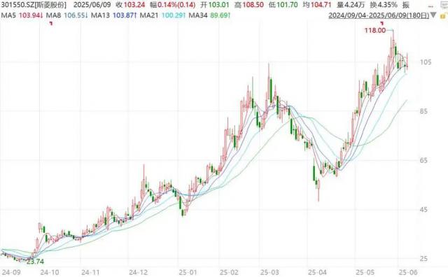 4 月初,斯菱股份随大盘调整一度跌破 50 元大关,然而在短短两个月内不仅迅速收复失地,还不断续创新高,最大涨幅超过 140%。